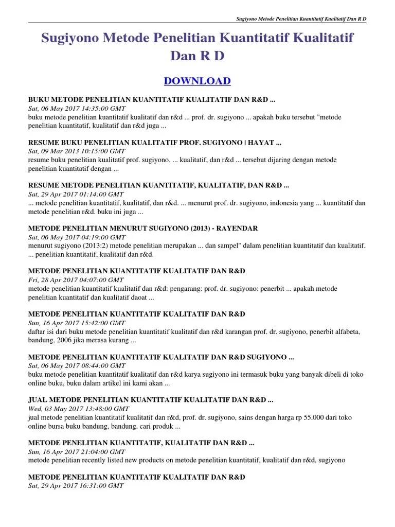 Metode penelitian kuantitatif, kualitatif dan r&d.(bandung:alfabeta.2015).6. Judul, metode penelitian kuantitatif kualitatif dan r dan d / sugiyono. 1) metode penelitian kuantitatif dan kualitatif . Metode penelitian kuantitatif, kualitatif dan r & d / sugiyono, author: Pada buku ini dikemukan tiga metode yaitu kuantitatif, kualitatif , penelitian dan pengembangan (research and development/r&d).