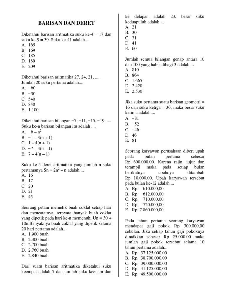 Soal Barisan Dan Deret Aritmatika Dan Geometri Sma / Sman3simpanghilir Sch Id : Kumpulan rumus barisan deret aritmatika geometri + contoh soal;